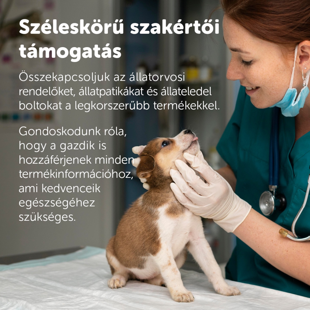 Elkötelezettek vagyunk az állatok egészségének és jóllétének támogatásában. Felkészült csapatunk folyamatosan bővülő, innovatív termékválasztékkal áll az állatgyógyászati szakemberek és állatorvos partnereink rendelkezésére. A gazdiknak pedig biztosítjuk a termékekkel kapcsolatos részletes információkat, továbbá partnertérképünk segítségével tájékoztatást nyújtunk azok elérhetőségében. Fedezze fel termékválasztékunkat és csatlakozzon hozzánk a felelős állattartásért folytatott közös törekvésünkben.